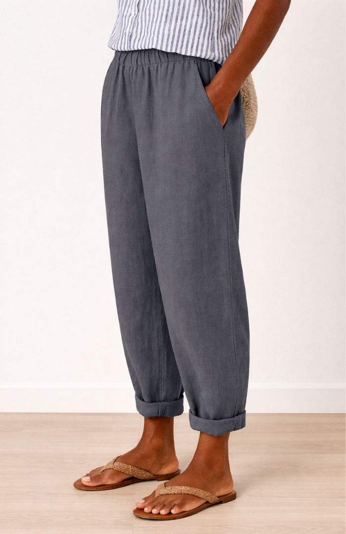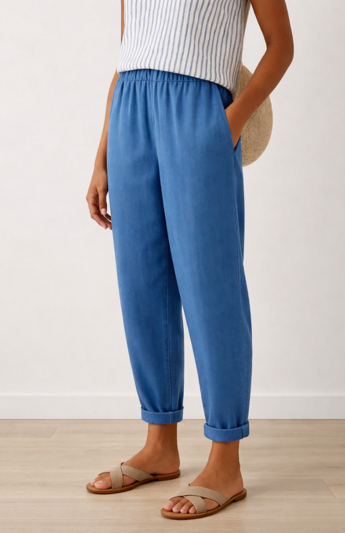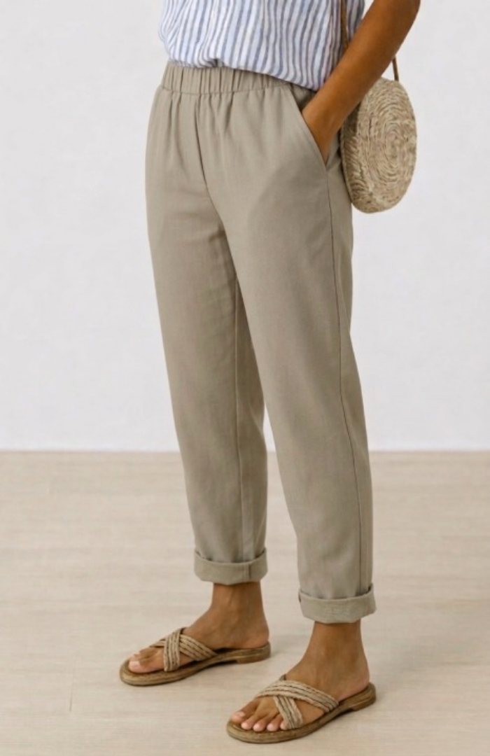 Cessez de vous contenter de denims rigides et irritants qui compriment votre taille et limitent chacun de vos mouvements. Le pantalon d'été léger Thalia est conçu pour accompagner les lignes de votre corps, éliminant ainsi la frustration des tailles qui bâillent et des jambes trop serrées. Ce pantalon offre une allure élancée et sculptée qui met en valeur vos atouts, tout en offrant la liberté de mouvement et la légèreté dont vous rêviez.